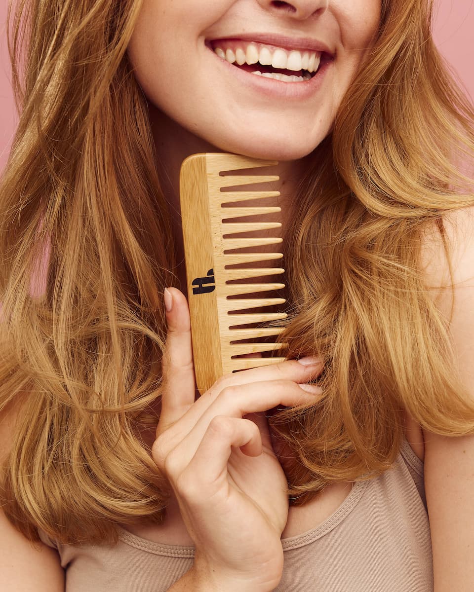 Hiusten muotoilu: Käytä bambukampaa jakausten tekemiseen, hiusten selvittämiseen kihartamisen jälkeen rikkomatta kiharien rakennetta, tai oman lempikampauksesi loihtimiseen. Harvapiikkisestä kammasta on moneen!
