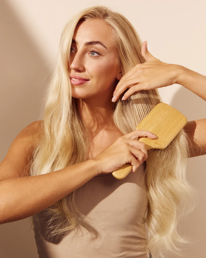 Leveän ja tasaisen pohjansa ansiosta Bamboo Paddle Brush on hyvä hiusharja pitkille ja paksuille hiuksille (vaikka se sopii kaikille hiustyypeille). Tämä hiusharja on suunniteltu päivittäiseen hiusten selvitykseen, muotoiluun sekä pörröisyyden taltuttamiseen. Voit käyttää harjaa myös antamaan hiuksille lisää tuuheutta ja volyymiä föönatessa, jos haluat näyttää siltä kuin olisit juuri käynyt kampaajalla!