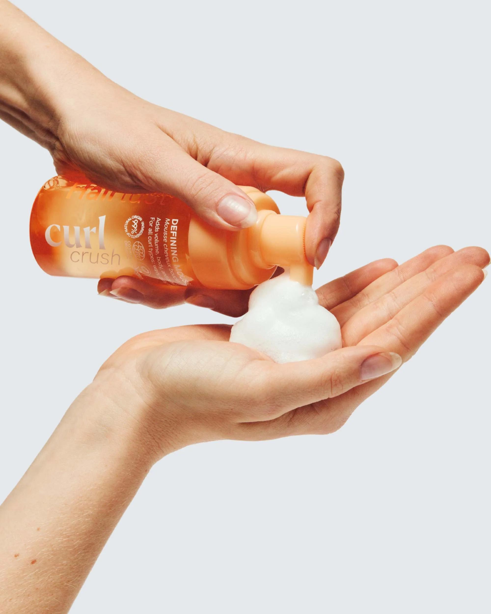 Curl Crush™ Defining Mousse on kevyt curl mousse eli muotovaahto kiharille hiuksille. Tämä muotoilutuote sopii kaikille kiharatyypeille, tehden kiharoista erotellut ja ilmavan tuuheat. Se korostaa kiharoiden luonnollista rakennetta pitkäkestoisesti. Tuotteen salaisuus? Luonnollinen tärkkelys, pullulaani, joka muodostaa kevyen suojaavan kerroksen hiusten ympärille erotellen ja ehkäisten pörröisyyttä. Koska pullulaani on vesiliukoinen ja kevyt aineososa, tämä muotovaahto kiharoille ei myöskään kerry hiuksiin tai latista niitä.